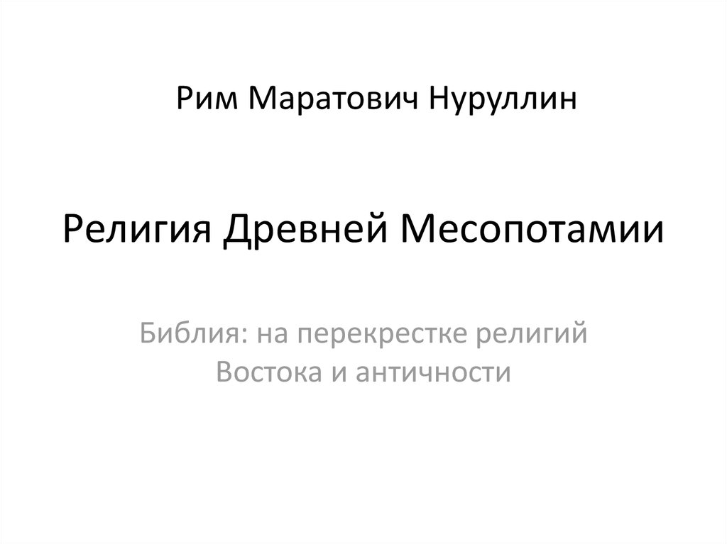Рим Маратович НуруллинРелигия Древней Месопотамии