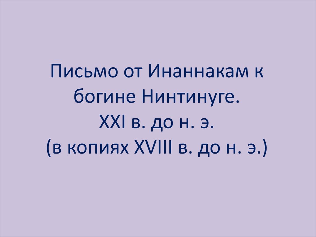 Письмо от Инаннакам кбогине Нинтинуге.