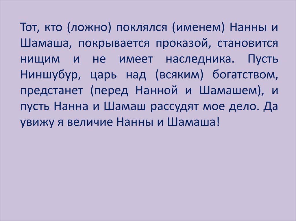 пусть Нанна и Шамаш рассудят мое дело. Да