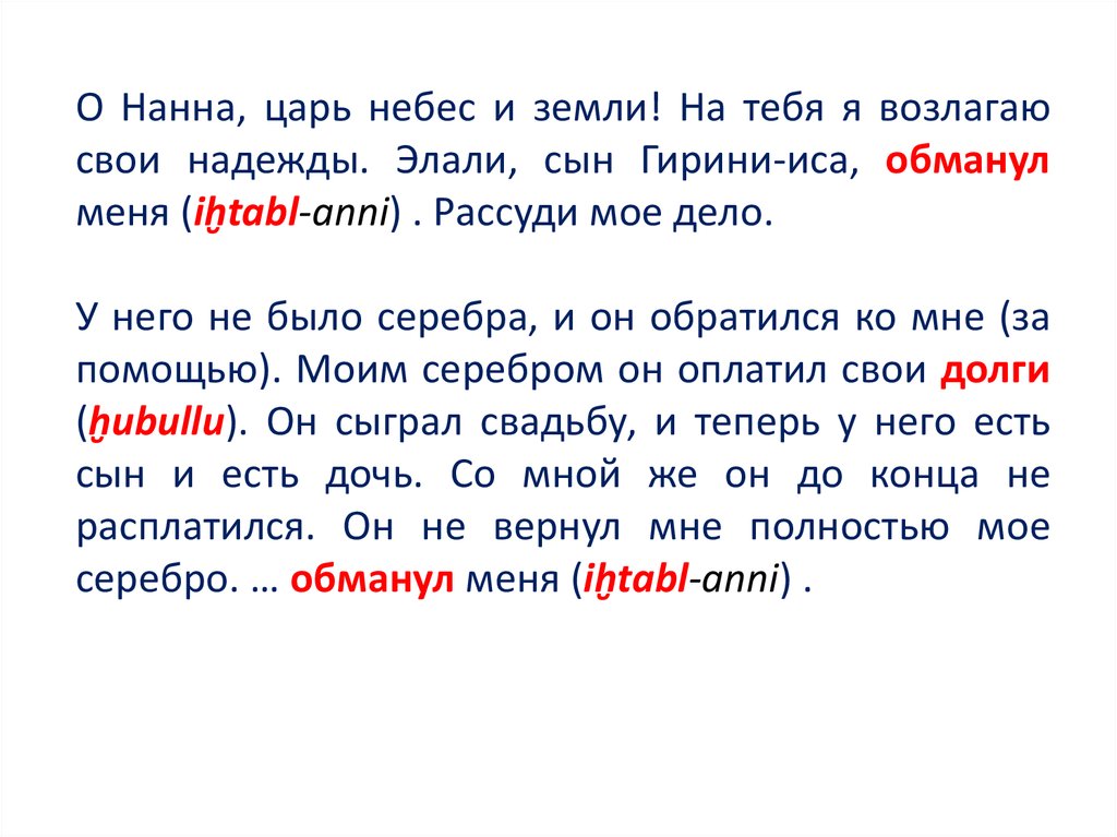 серебро. … обманул меня (iḫtabl-anni) .