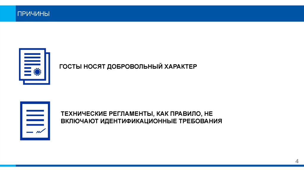 Включение в нормативно-правовые акты идентификационных требований