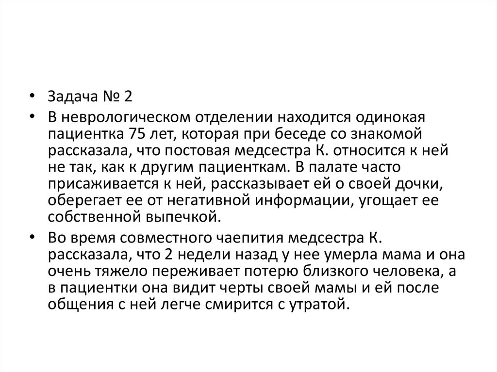 • Задача № 2• В неврологическом отделении находится одинокая