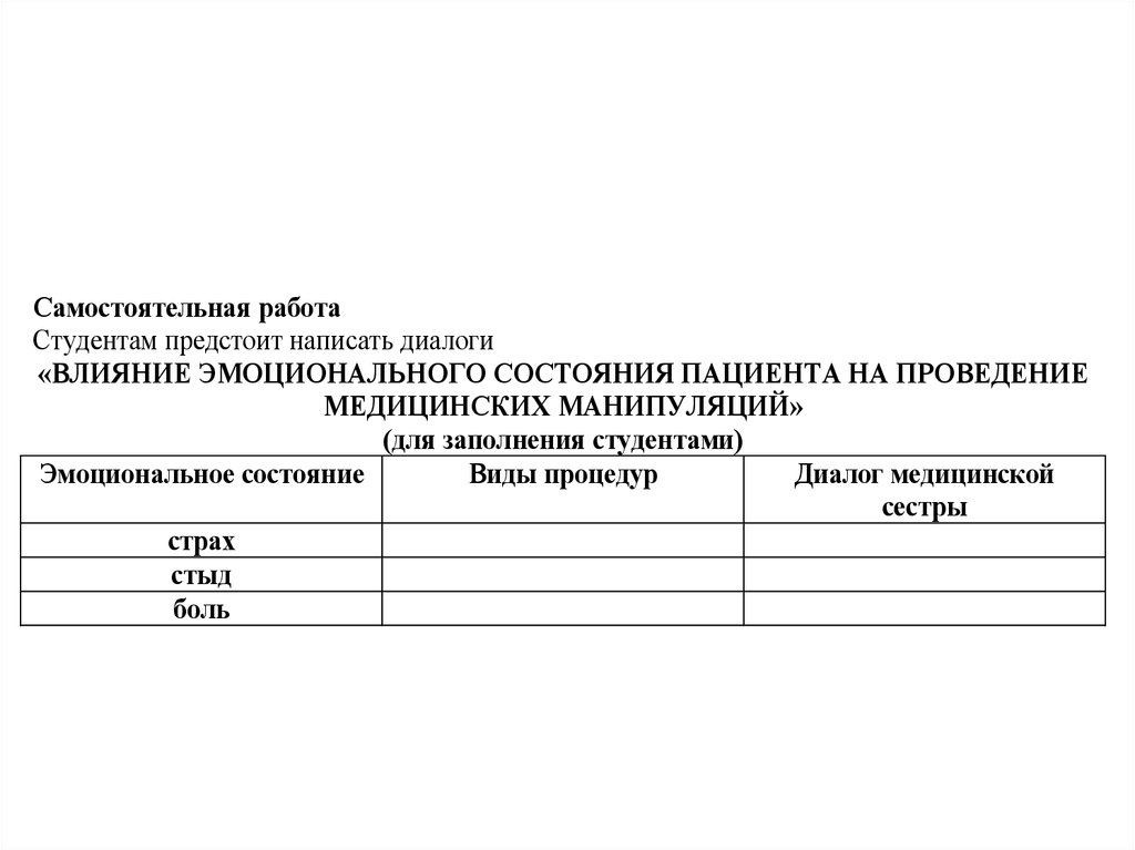 «ВЛИЯНИЕ ЭМОЦИОНАЛЬНОГО СОСТОЯНИЯ ПАЦИЕНТА НА ПРОВЕДЕНИЕ
