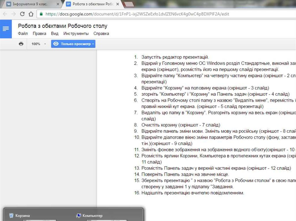 Робота з робочим столом