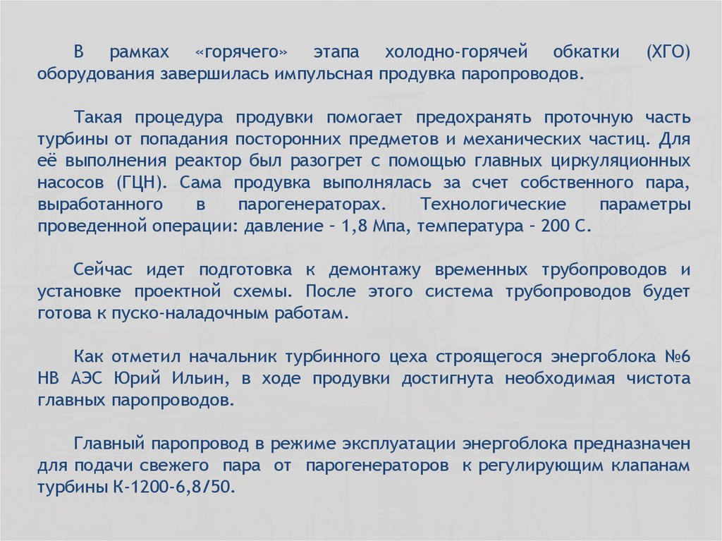 НВ АЭС Юрий Ильин, в ходе продувки достигнута необходимая чистота