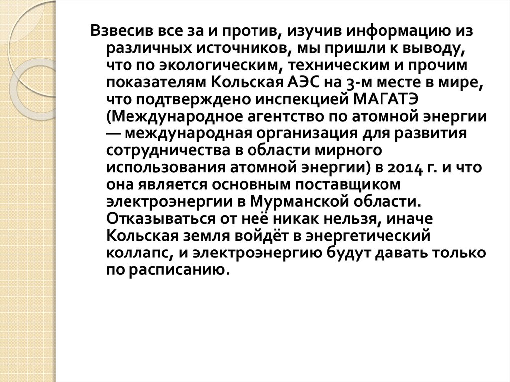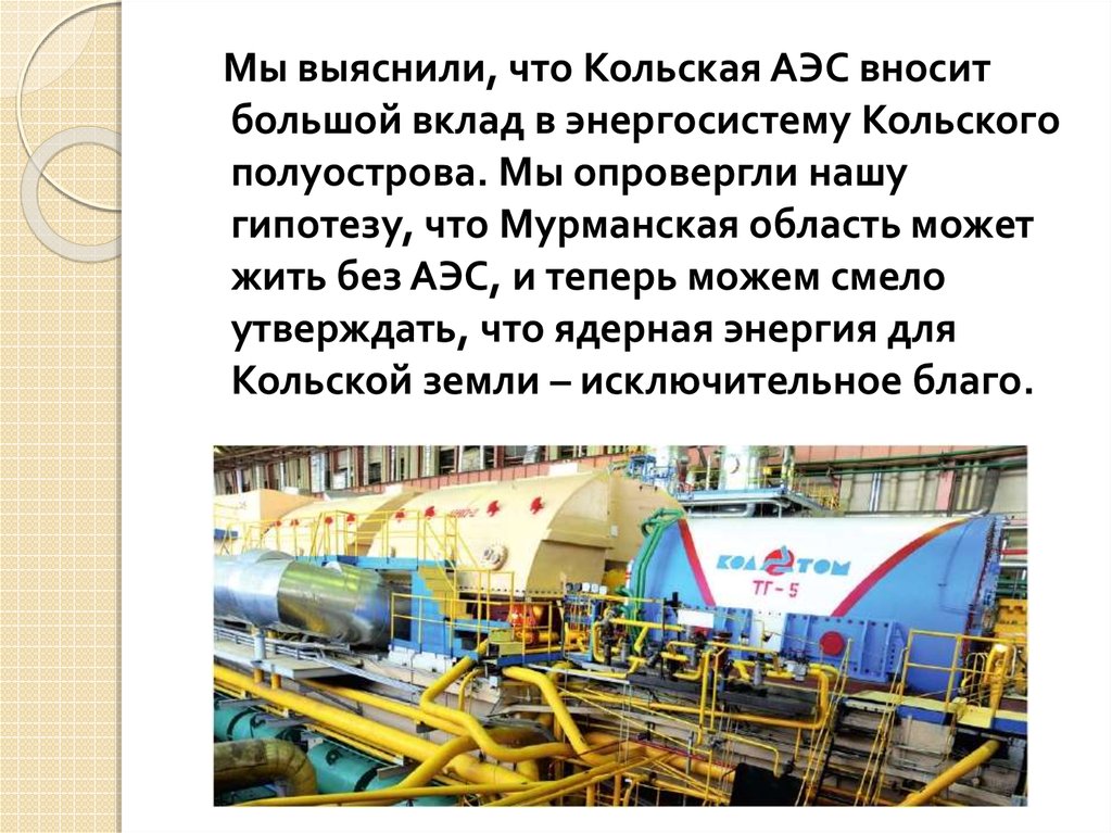 Мы выяснили, что Кольская АЭС вноситбольшой вклад в энергосистему Кольского
