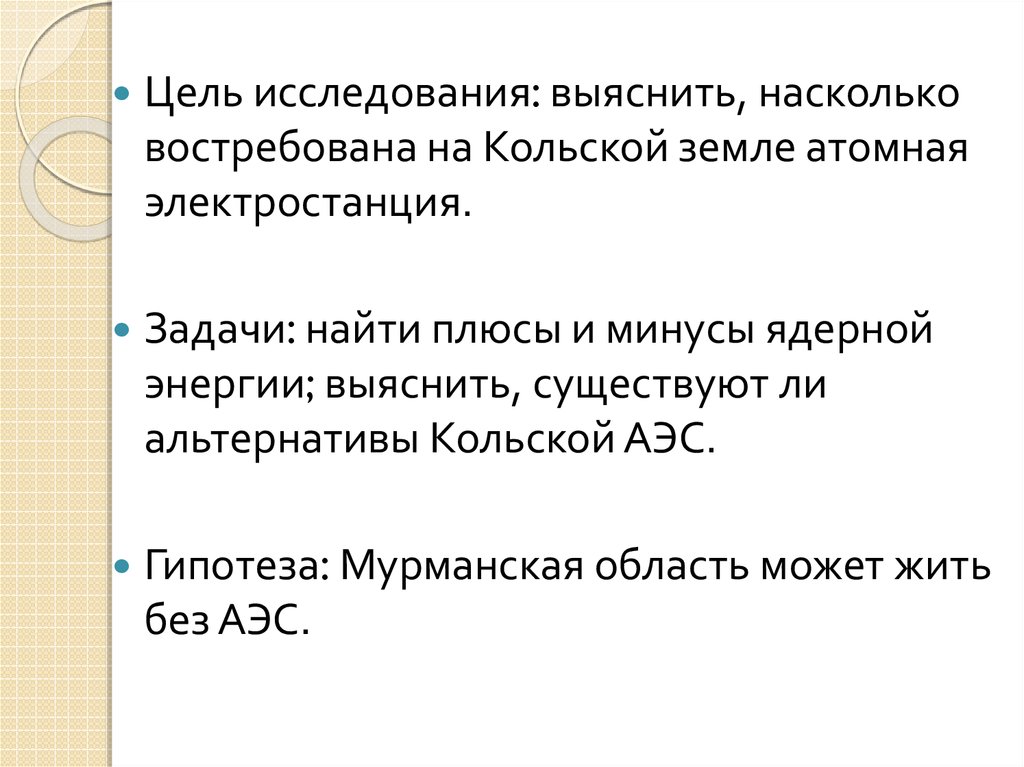 Цель исследования: выяснить, наскольковостребована на Кольской земле атомная