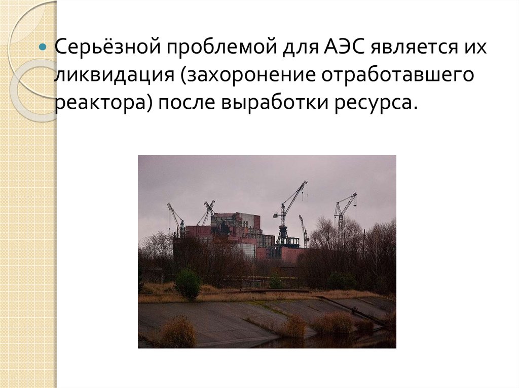 Серьёзной проблемой для АЭС является ихликвидация (захоронение отработавшего