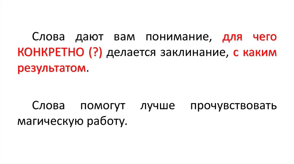 Слова дают вам понимание, для чегоКОНКРЕТНО (?) делается заклинание, с каким