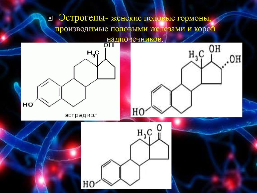 Эстрогены- женские половые гормоны,производимые половыми железами и корой