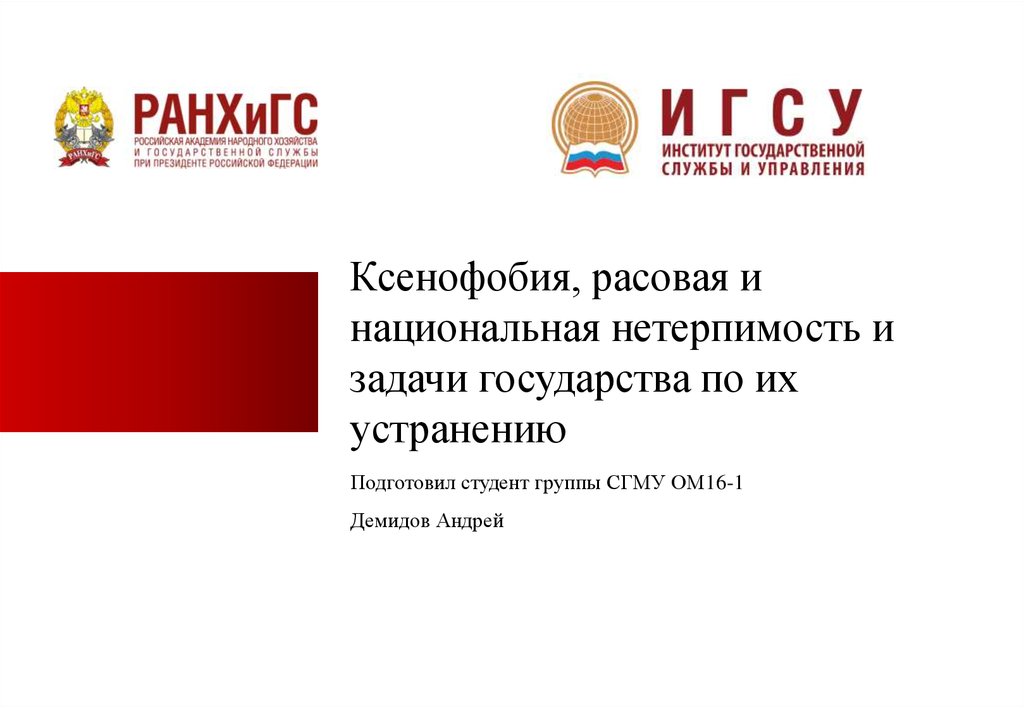 Ксенофобия, расовая и национальная нетерпимость и задачи государства по их устранению