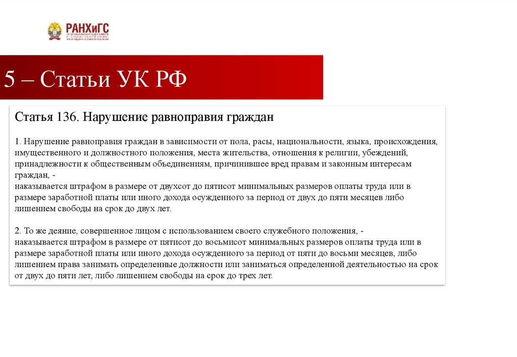 5 – Статьи УК РФ