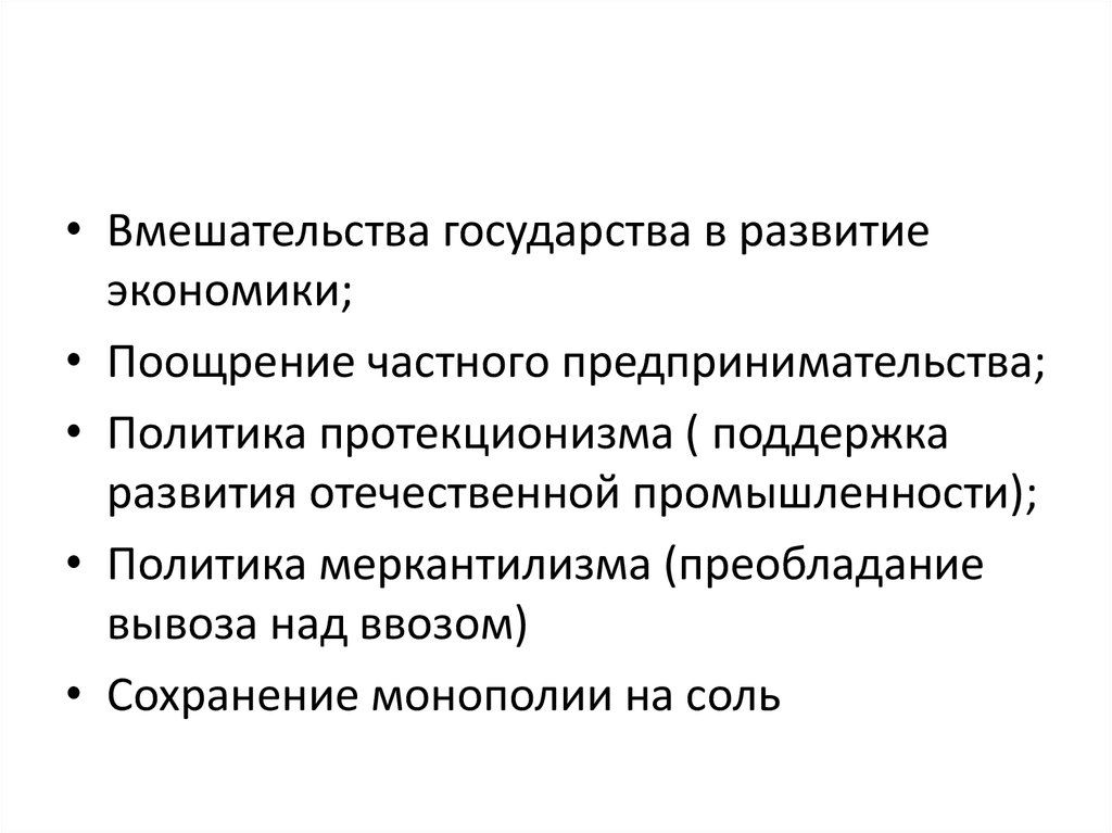 • Политика меркантилизма (преобладание
