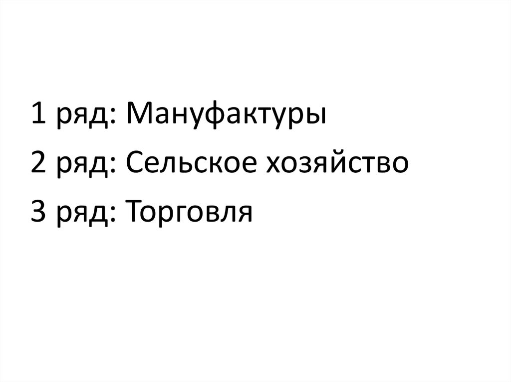 1 ряд: Мануфактуры2 ряд: Сельское хозяйство