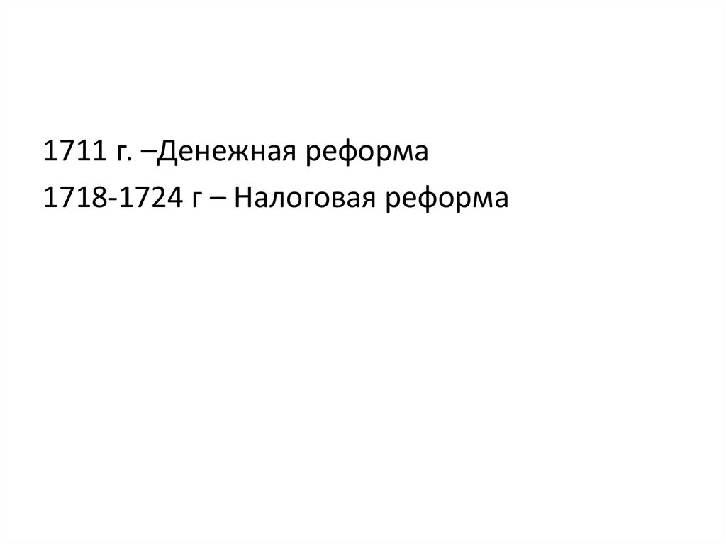 1711 г. –Денежная реформа1718-1724 г – Налоговая реформа