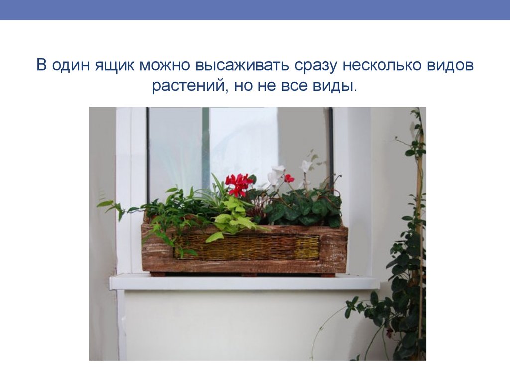 В один ящик можно высаживать сразу несколько видоврастений, но не все виды.