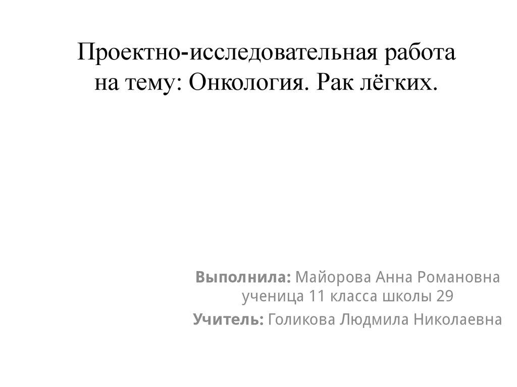 Проектно-исследовательная работана тему: Онкология. Рак лёгких.
