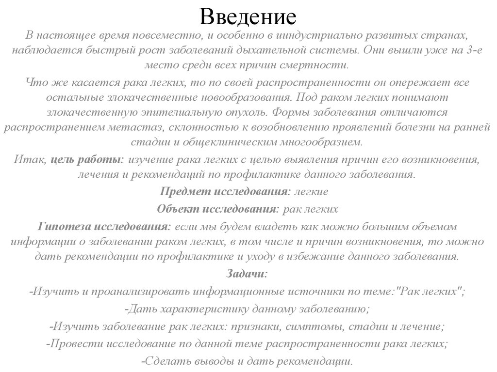 Итак, цель работы: изучение рака легких с целью выявления причин его возникновения,