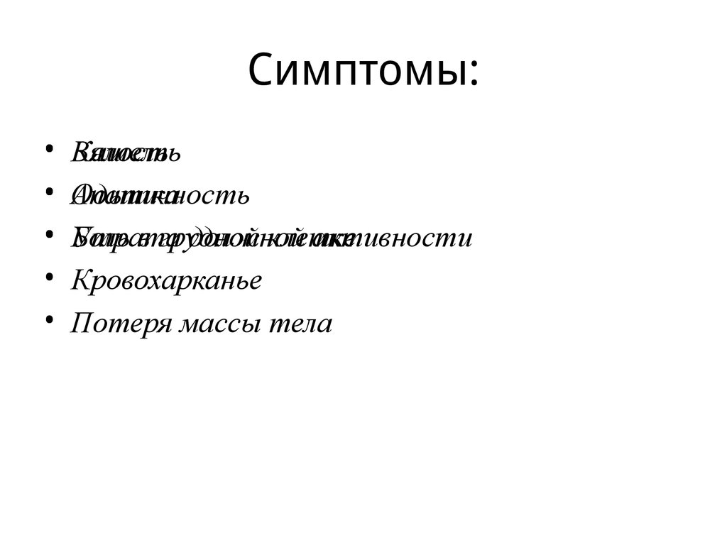 Симптомы:Вялость
