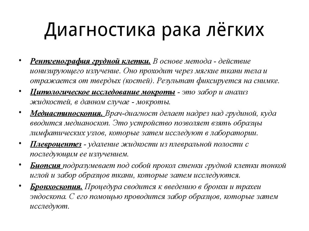 таким как: рентгенография грудной клетки, цитологическое исследование