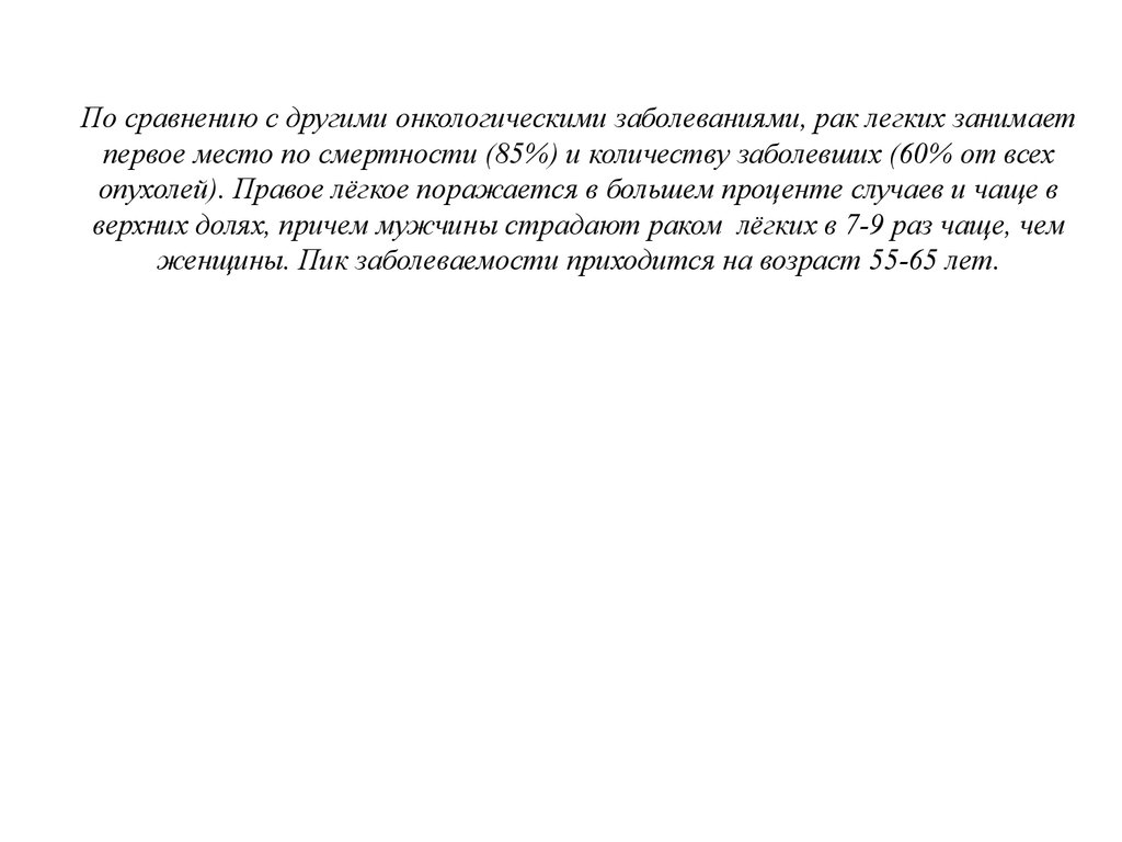 верхних долях, причем мужчины страдают раком лёгких в 7-9 раз чаще, чем