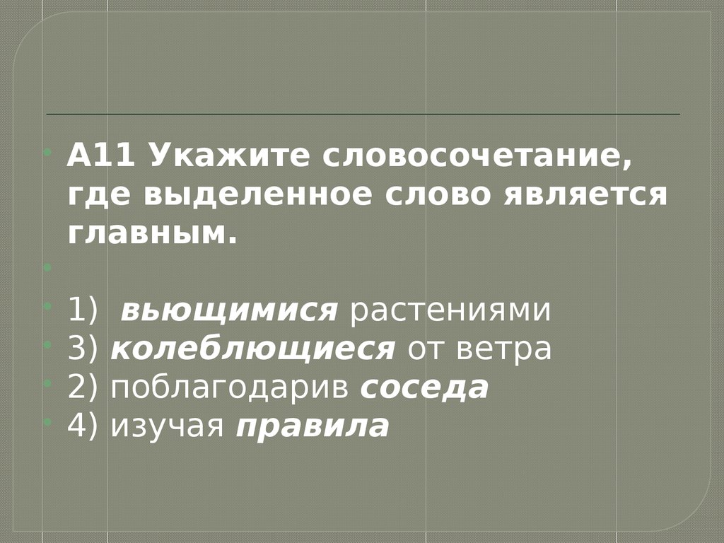 А11 Укажите словосочетание,где выделенное слово является