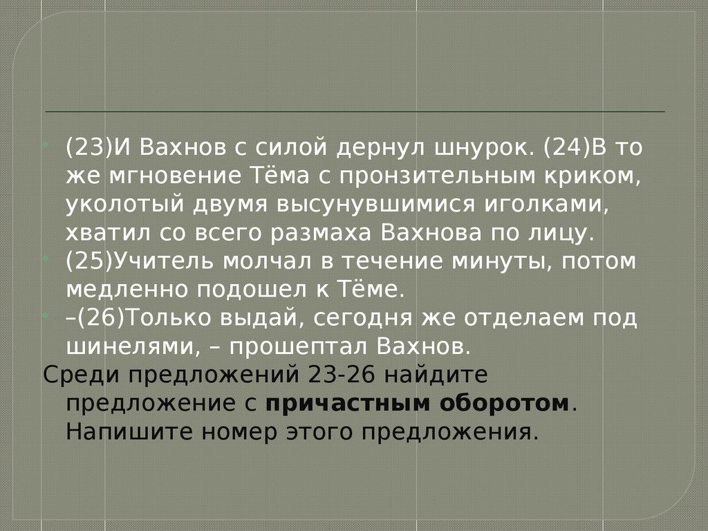 (23)И Вахнов с силой дернул шнурок. (24)В тоже мгновение Тёма с пронзительным криком,