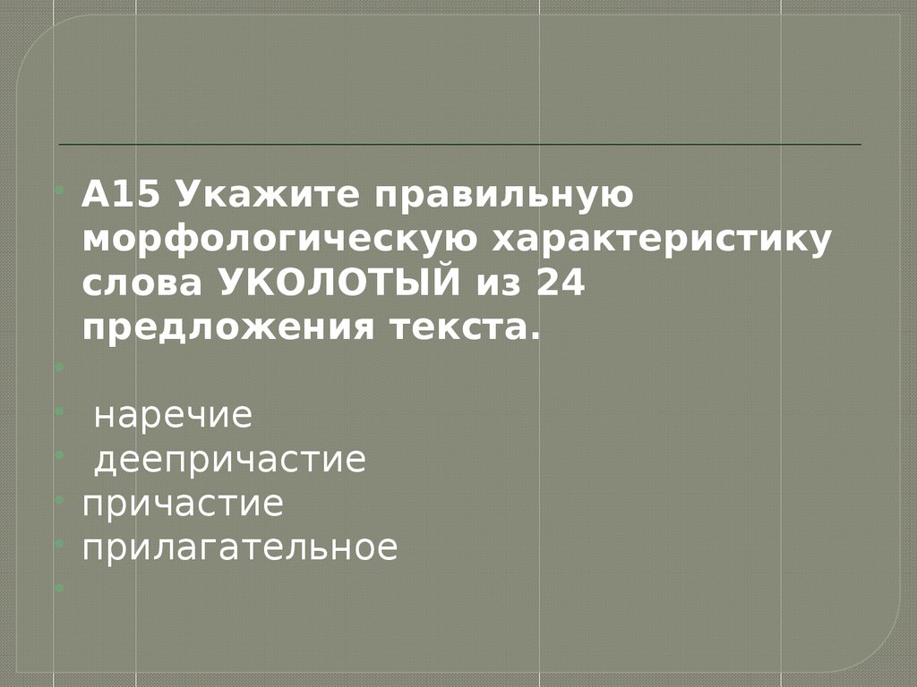 А15 Укажите правильнуюморфологическую характеристику