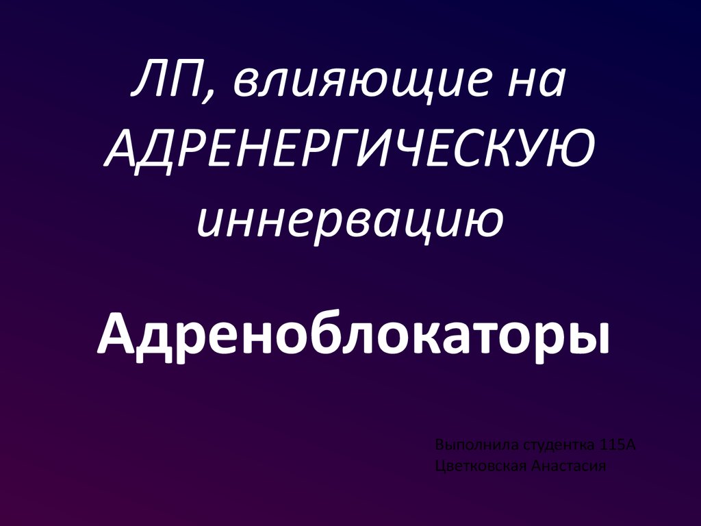 1. ЛП, влияющие на АДРЕНЕРГИЧЕСКУЮ иннервацию