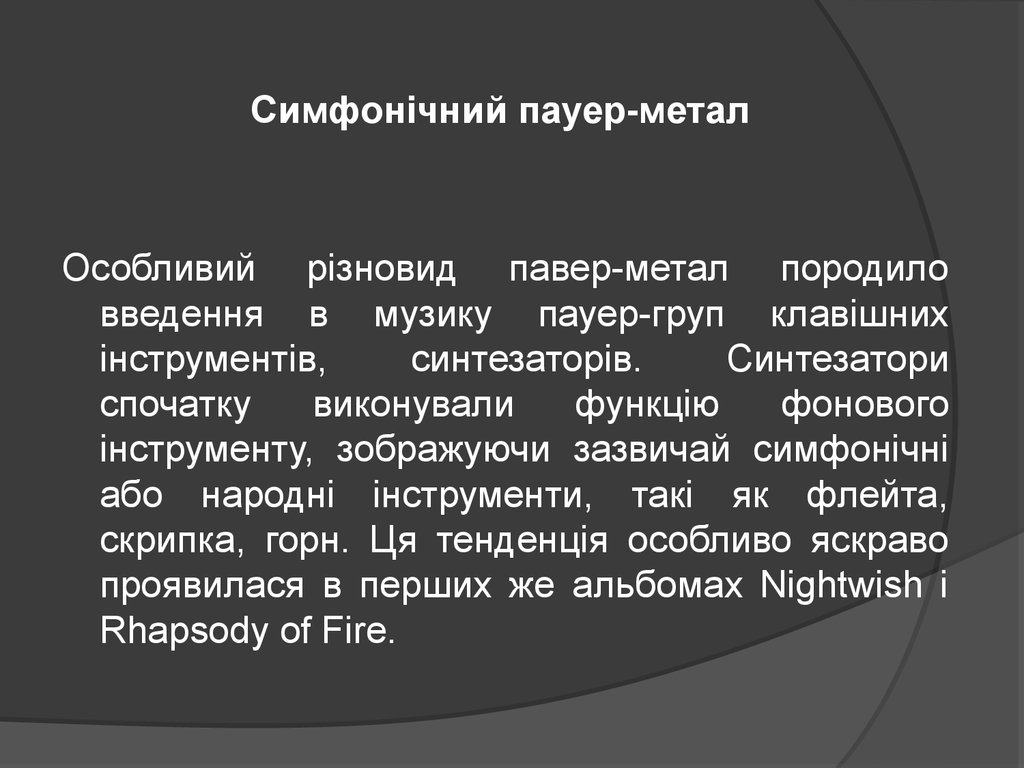 Симфонічний пауер-металОсобливий різновид павер-метал породило
