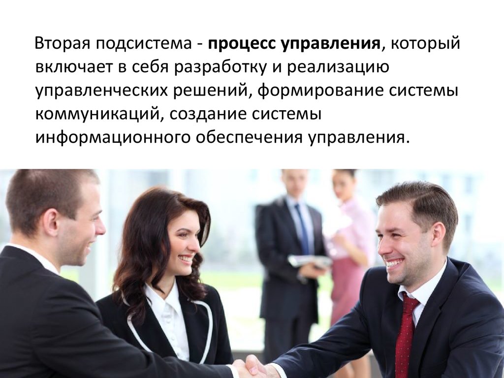 Вторая подсистема - процесс управления, которыйвключает в себя разработку и реализацию
