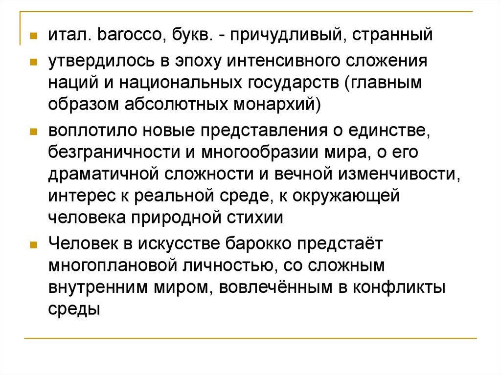 итал. barocco, букв. - причудливый, странныйутвердилось в эпоху интенсивного сложения