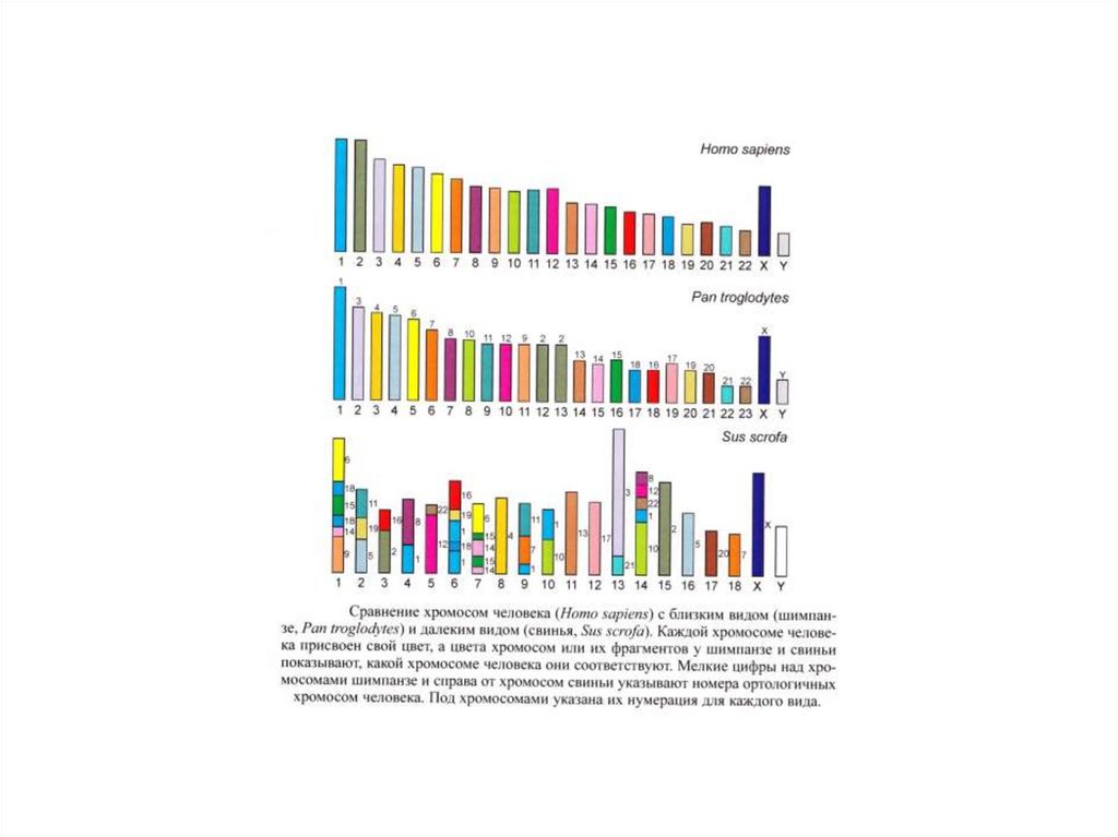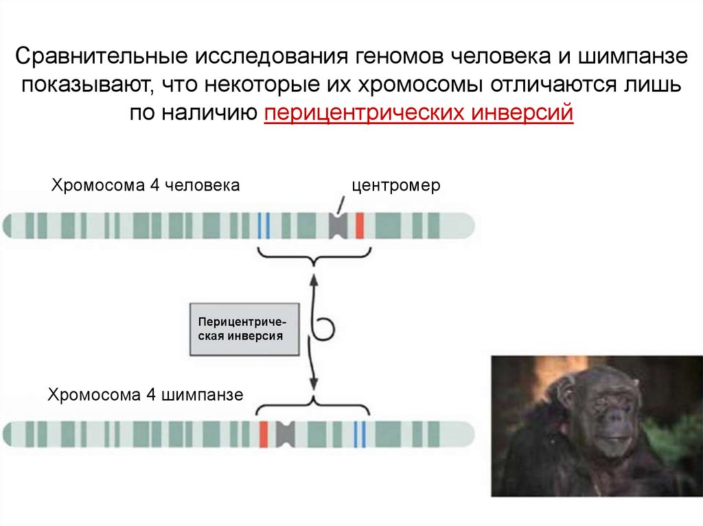 Сравнительные исследования геномов человека и шимпанзепоказывают, что некоторые их хромосомы отличаются лишь
