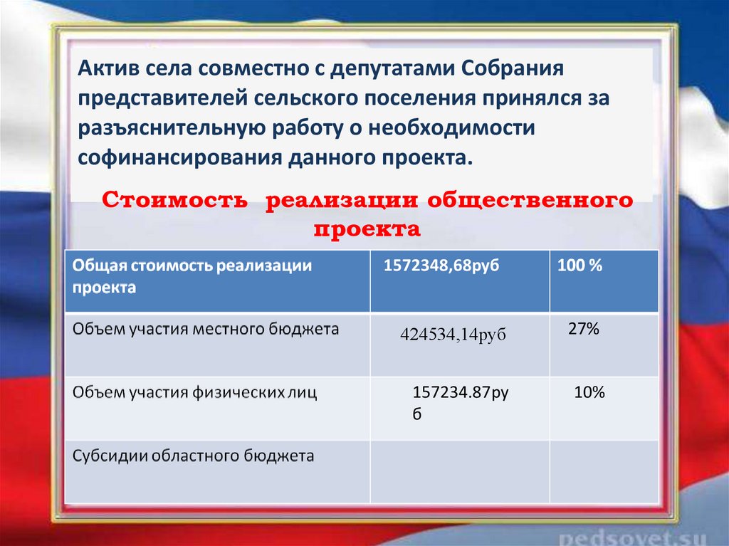 Реализация данного общественного проекта будетспособствовать улучшению облика села,