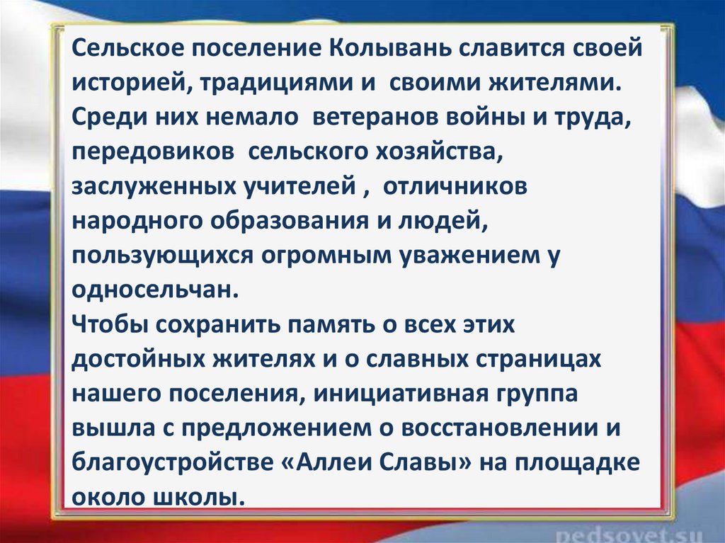 проект «Аллея Славы» в селе Колывань в
