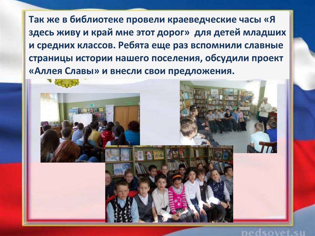 Так же в библиотеке провели краеведческие часы «Яздесь живу и край мне этот дорог» для детей младших