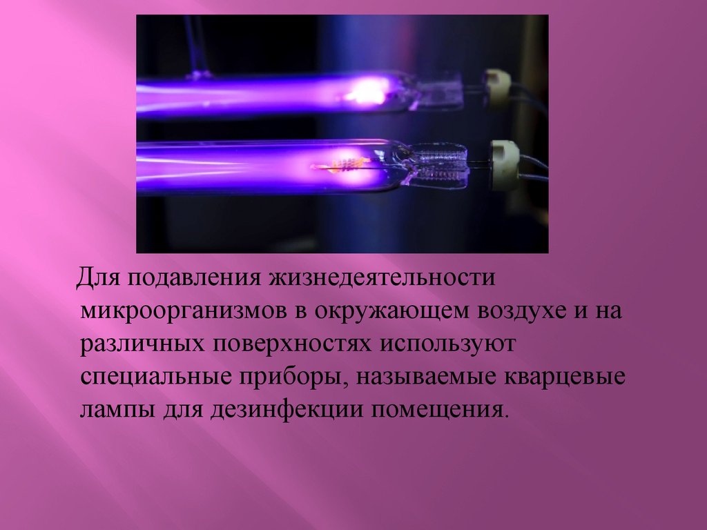Для подавления жизнедеятельностимикроорганизмов в окружающем воздухе и на
