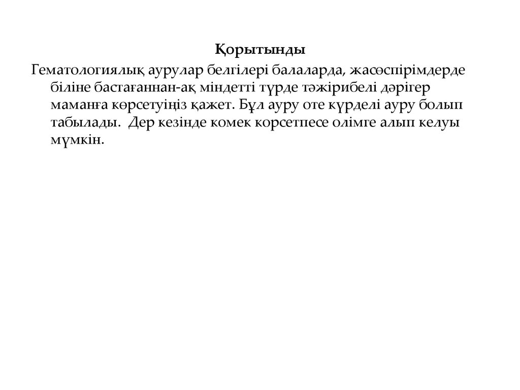 ҚорытындыГематологиялық аурулар белгілері балаларда, жасөспірімдерде