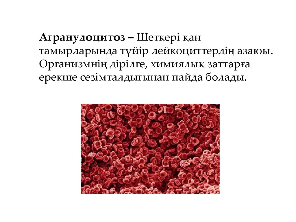 Агранулоцитоз – Шеткері қантамырларында түйір лейкоциттердің азаюы.
