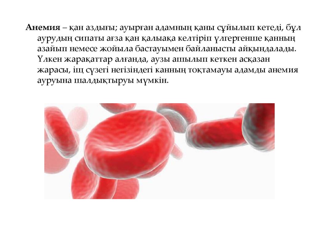 Анемия – қан аздығы; ауырған адамның қаны сұйылып кетеді, бұлаурудың сипаты ағза қан қалыақа келтіріп үлгергенше қанның
