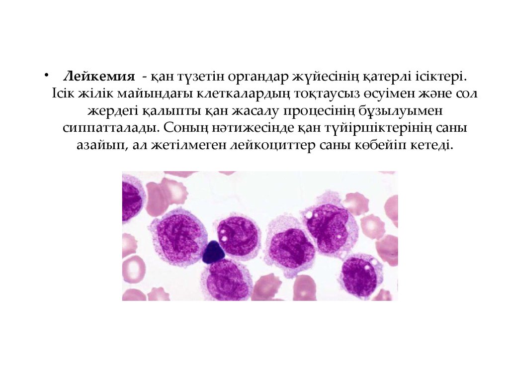Лейкемия - қан түзетін органдар жүйесінің қатерлі ісіктері.