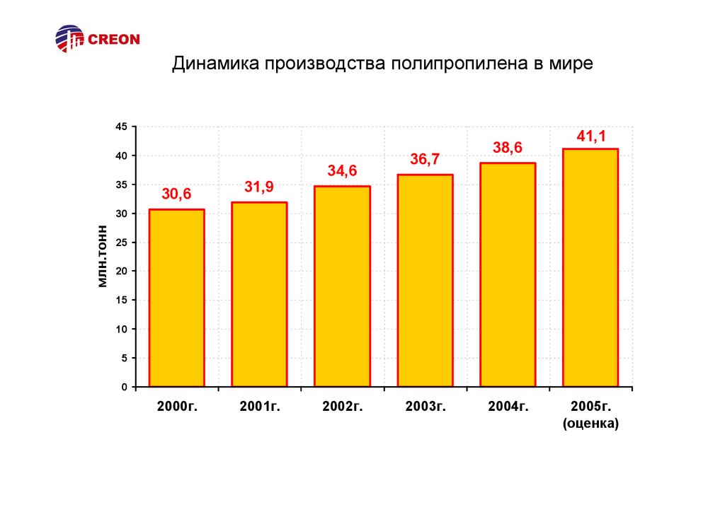 Динамика производства полипропилена в мире45