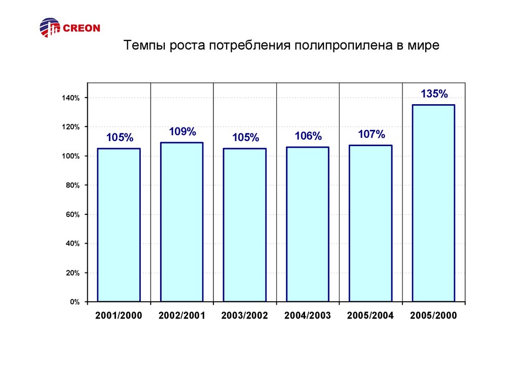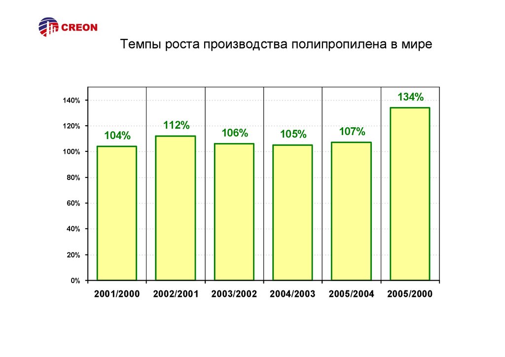 Темпы роста производства полипропилена в мире134%
