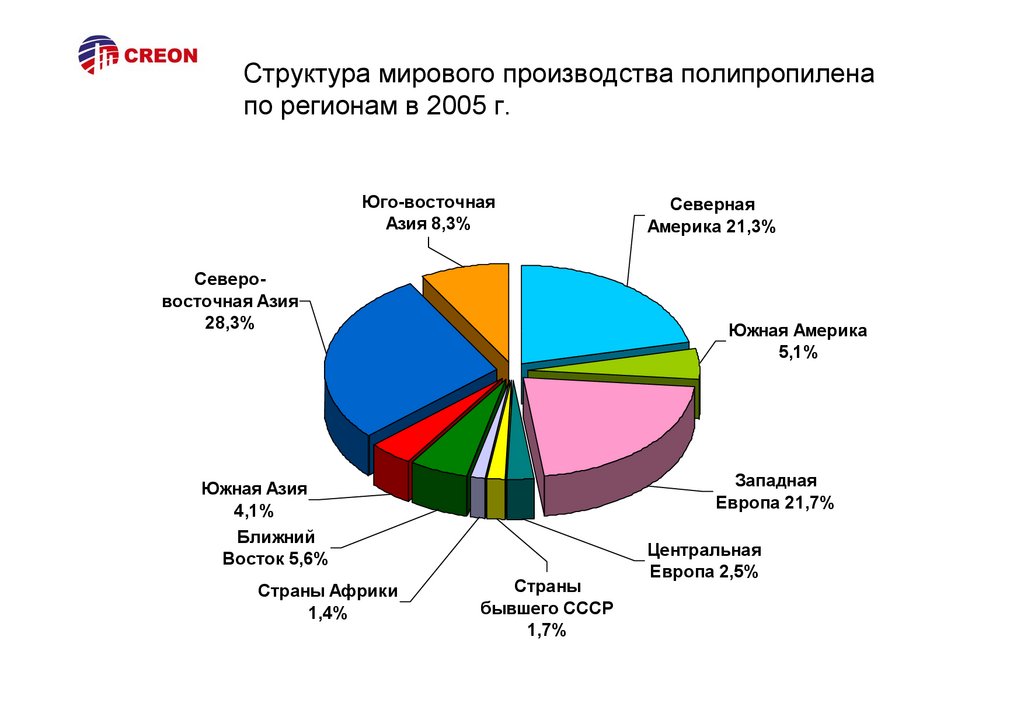4. Крупнейшими региональными рынками полипропилена являются Северовосточная Азия, Северная Америка и Западная Европа.