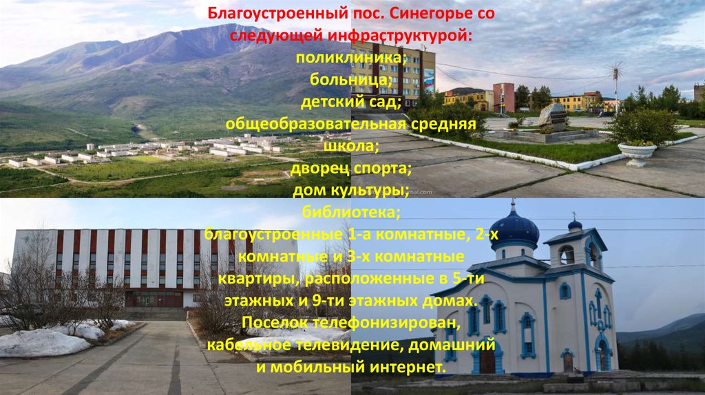 Благоустроенный пос. Синегорье соследующей инфраструктурой: