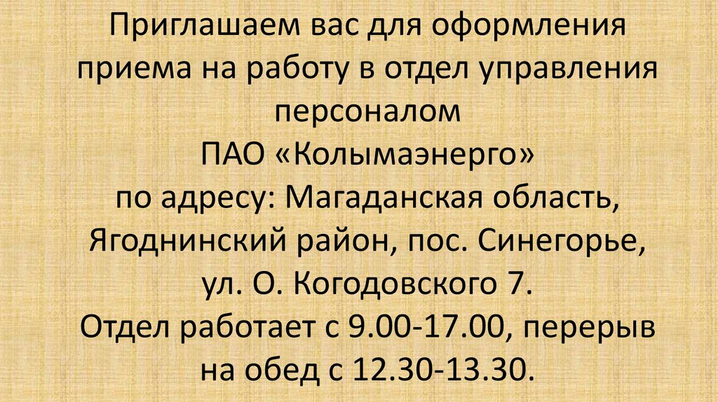 Приглашаем вас для оформленияприема на работу в отдел управления