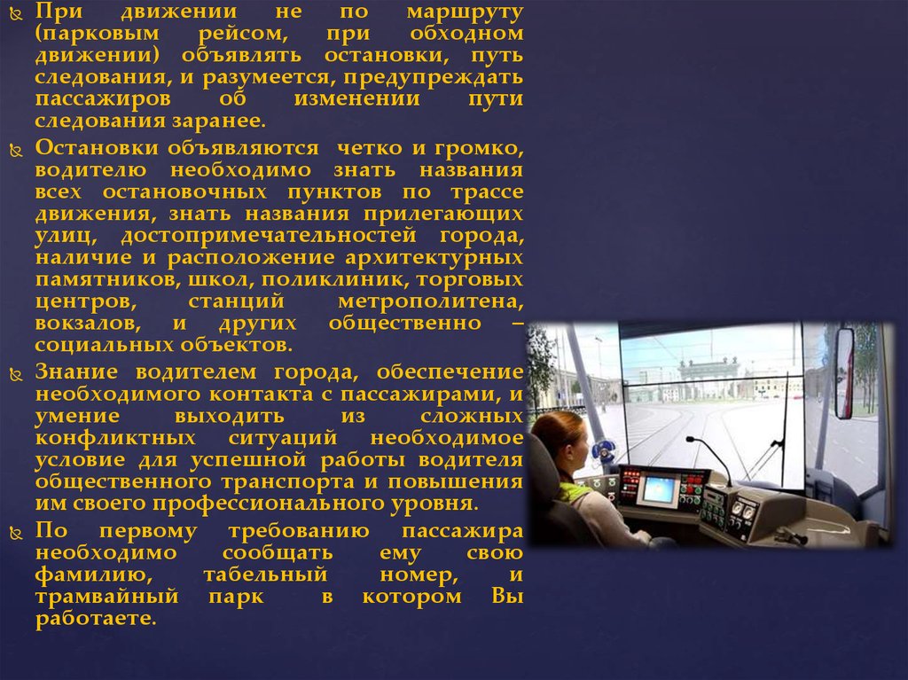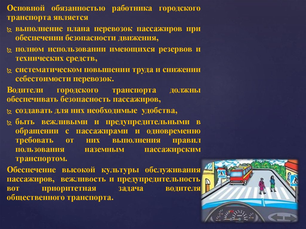 Основной обязанностью работника городскоготранспорта является