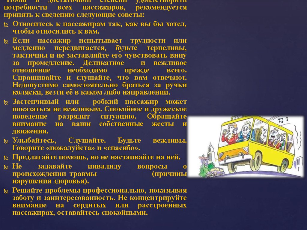 пассажиров, вежливость и предупредительность