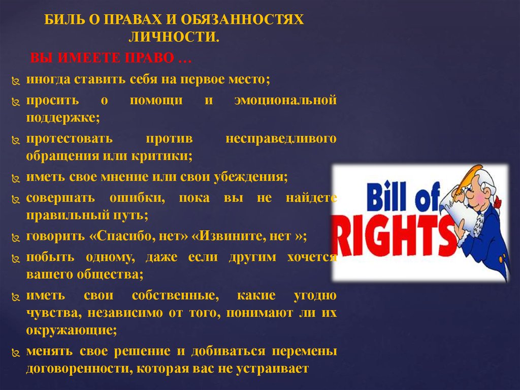 БИЛЬ О ПРАВАХ И ОБЯЗАННОСТЯХЛИЧНОСТИ.