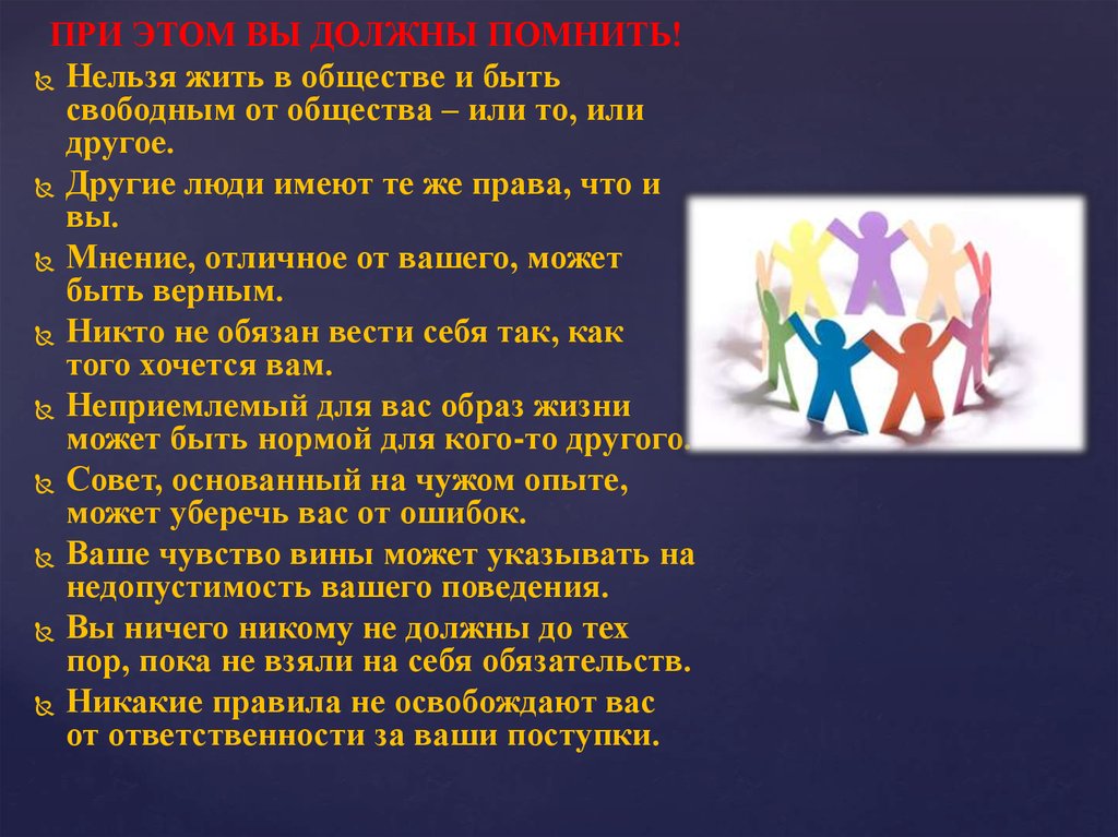 ПРИ ЭТОМ ВЫ ДОЛЖНЫ ПОМНИТЬ!Нельзя жить в обществе и быть